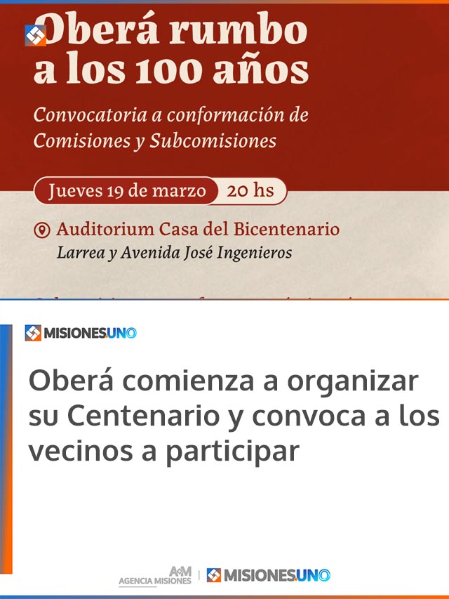 Oberá comienza a organizar su Centenario y convoca a los vecinos a participar