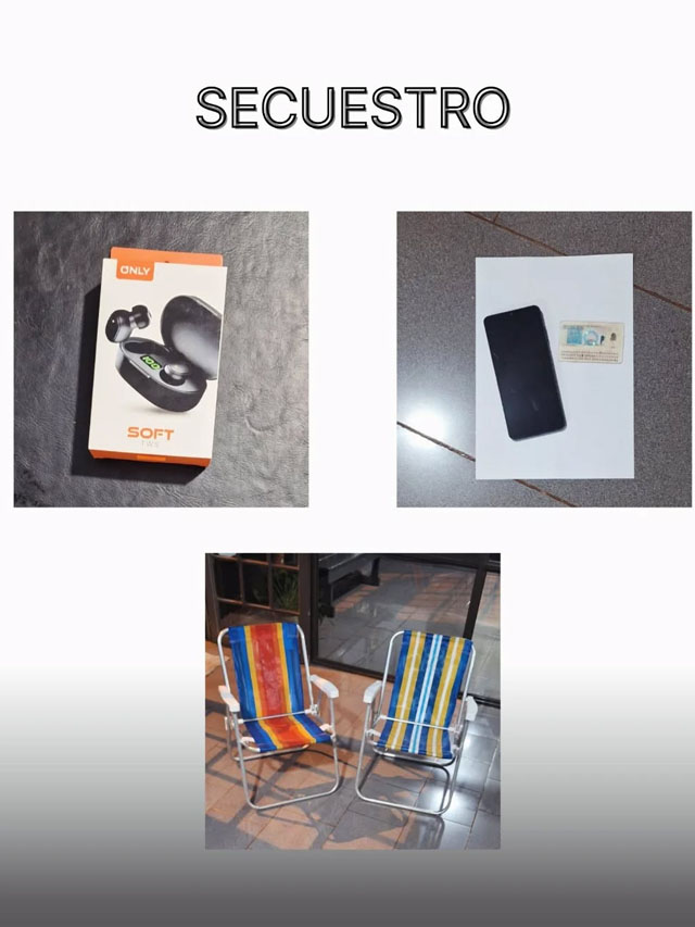 Entre los elementos recuperados se encuentran un teléfono celular sustraído de una vivienda ubicada en la calle Antártida Argentina y sillones plegables que habían sido robados de la carrocería de una camioneta estacionada en la calle Puerto Nuevo. Los objetos fueron localizados tras determinar que habían sido comercializados en el barrio Caballeriza, donde fueron identificados los compradores que desconocían su procedencia.