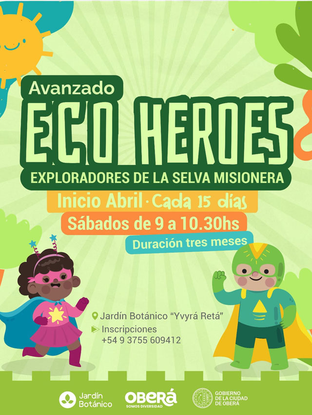AGENCIA MISIONES.UNO | El Gobierno de la Ciudad de Oberá abrió las inscripciones para la tercera edición del programa Ecohéroes, una propuesta ambiental destinada a niños y niñas de entre 6 y 13 años que se desarrollará en el Jardín Botánico.