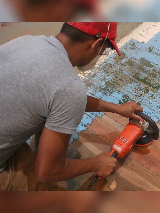 El proceso incluye además el pintado de las líneas reglamentarias y concluye con un pulido final mediante maquinaria especializada, dejando el piso en óptimas condiciones para su utilización en actividades deportivas.