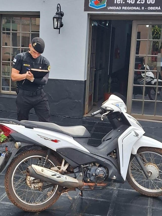 Efectivos del Comando Centro lograron recuperar una motocicleta robada en Oberá, en el marco de un trabajo articulado que permitió avanzar en el esclarecimiento del hecho denunciado por un hombre de 31 años.
